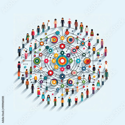 Velká skupina lidí stojící pohromadě ve tvaru žárovky, ploché vektorové ilustrace. Lidé se shromažďují. Kreativní a globální nápad, inovační koncept.