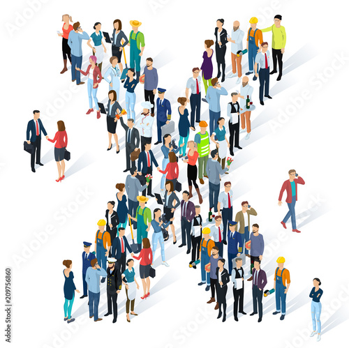 Velká skupina lidí tvořících klienty slovo stojící pohromadě, ploché vektorové ilustrace. Lidé se shromažďují. Klienti služby typografie banner. Obchodní koncept.