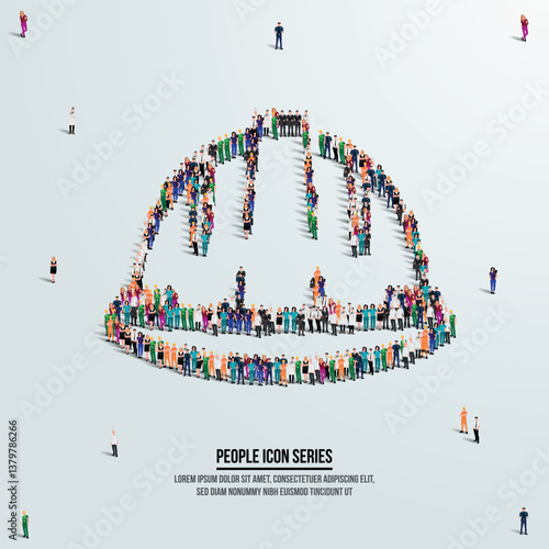 Velká skupina lidí, kteří stojí pohromadě a tvoří asijské slovo, ploché vektorové ilustrace. Lidé se shromažďují. Asie kontinent typografie banner. Populace, obchod, statistika, kultura atd.