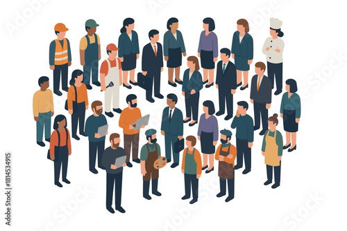 Velká skupina lidí stojící pohromadě tvořící Evropa slovo, ploché vektorové ilustrace. Lidé se shromažďují. Evropa kontinent typografie banner. Populace, obchod, statistika, kultura atd.