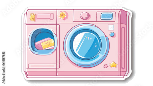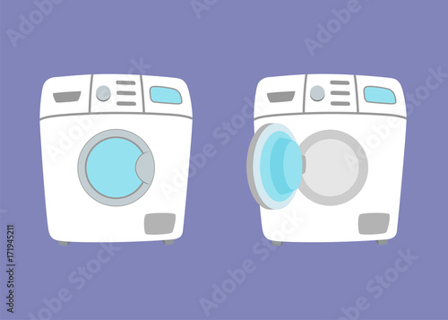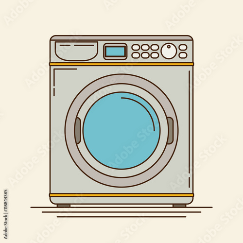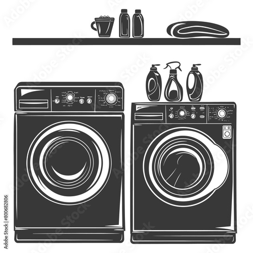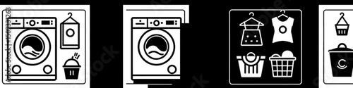 Prádelna vybavení bytu vektorové plakát. Pračka, koš na prádlo a prací prostředek, žehlicí prkno ilustrace. Služba prádelny
