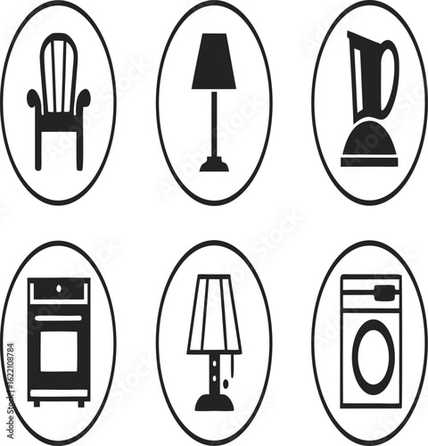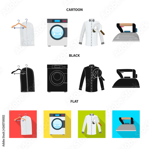 Prádelna ikona set, vektorové ilustrace izolovaných na bílém pozadí. Praní a žehlení prádla. Tenký design ve stylu umění.