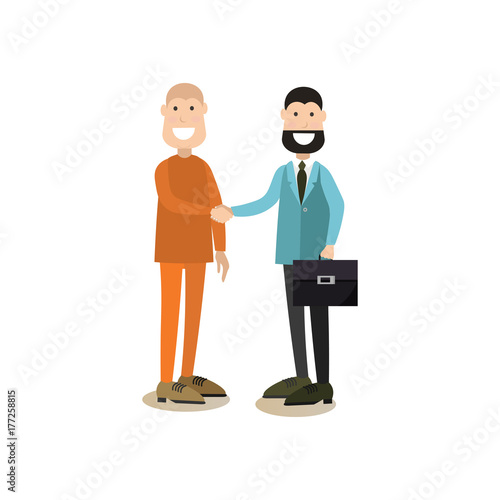 Vektorová ilustrace šťastného právníka nebo obhájce a obžalovaného oslavujícího vítězství v soudním řízení. Law court lidé plochý styl designový prvek, ikona izolován na bílém pozadí.
