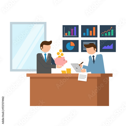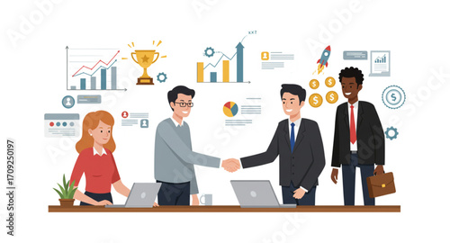 Vektorová ilustrace šťastného právníka poskytujícího soudu důkaz o nevině jeho klienta. Law court lidé plochý styl designový prvek, ikona izolován na bílém pozadí.