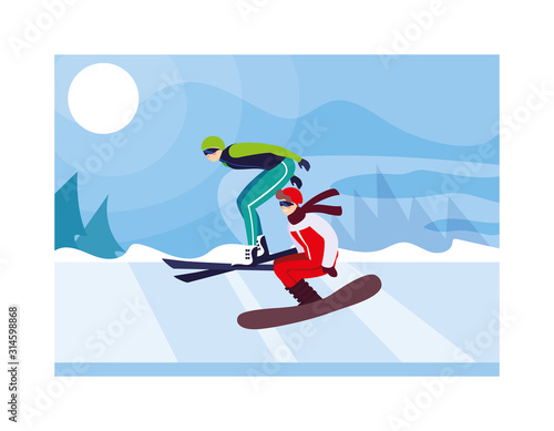 Vrstvený papír řezané barevné snowboardista silueta, vektorové ilustrace v papírové umění stylu. Zimní sporty a rekreační aktivity kreativní nápad.
