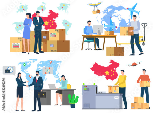 Právní zkušební scéna set, plochý vektorový obrázek. Soudní zasedání v soudní síni. Soudce, porota, právníci, ochranka, obžalovaný. Veřejné slyšení, trestní řízení. Soudní proces. Právo a spravedlnost.