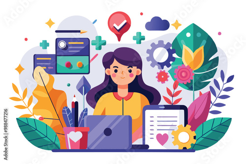 Lesbická žena pracuje s obrazovkami virtuální reality. Inženýrka a analytička dat. Rozmanitost a prolomit vektorovou ilustraci konceptu zkreslení vědy. Ženy v technice. Obchodní inovativní technologie.