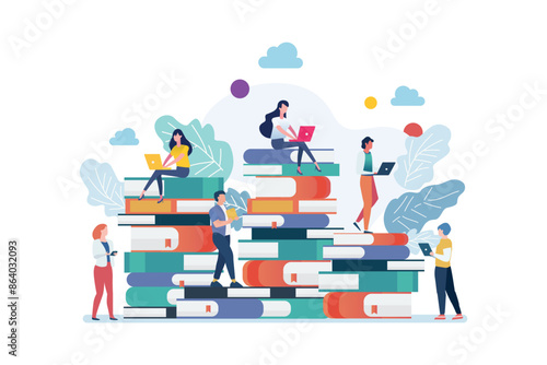 Tiny people ženské postavy básníci psaní a čtení básní, vektorové ploché ilustrace. Literatura a kultura, umění poezie, koncept online literárního časopisu.