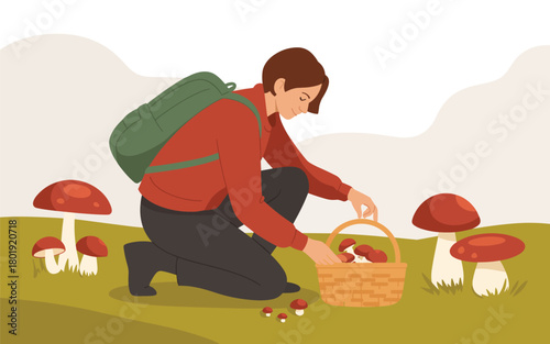 Malý chlapec dítě sbírání ovoce vektorové ikony izolovaných na bílém pozadí.