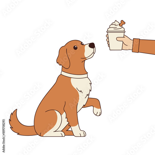 Malý chlapec přijímání štěně jako dárek vektorové ikony izolované pozadí.