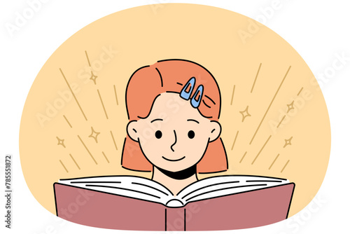 Holčička čte knihu na posteli. Vektorová ilustrace v komiksovém pop artovém stylu. Dívka sní o něčem čtení příběhu.