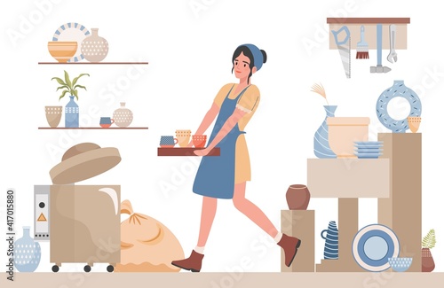 Holčička mytí nádobí doma vektorové ikony izolovaných na bílém pozadí