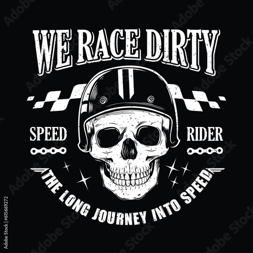 Žít rychle zemřít mladý vektor grunge design s lidskou lebkou a ručních kostí. Vintage ilustrace pro tričko nebo tisk.