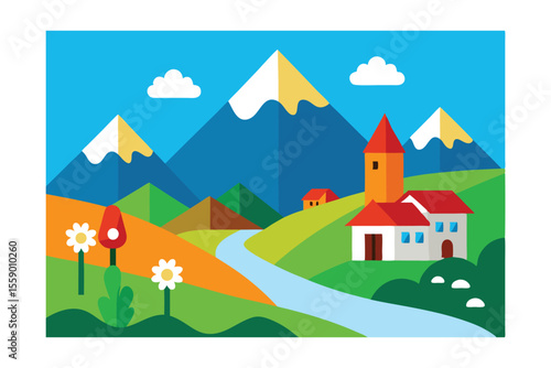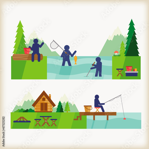 Bufet party nebo off-premise banket s živou hudbou a restaurace venkovní catering. Přírodní krajina, klavíristka a zpěvačka, číšník a hosté navrhují prvky v plochém stylu.