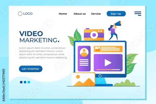 Živé vysílání, vysílání. Podcast koncept ilustrace. Vektor web design šablony. Žena blogger, online stream ve studiu.