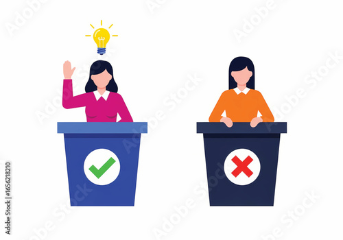 Živá televizní debata, politický dialog mezi kandidáty, politici, oponenti mužské postavy vektorové ploché izolované ilustrace. Politické setkání, talk show, volební kampaň, spor, řečnictví