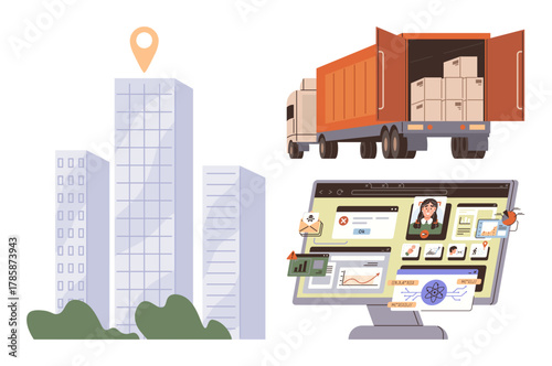 Mužské znaky nakladače loading eco konopí dodávka truck s rekreační konopí, lékařské marihuany, CBD produkty, flat vector ilustrace. Služba doručování konopí, legální obchod s marihuanou.