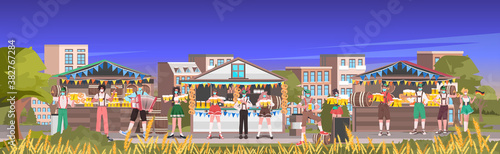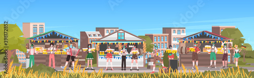Místní tržiště. Lidé kupují čerstvé ovoce, zeleninu, koření, chléb, ploché vektorové ilustrace. Zemědělci prodávající přírodní biopotraviny.