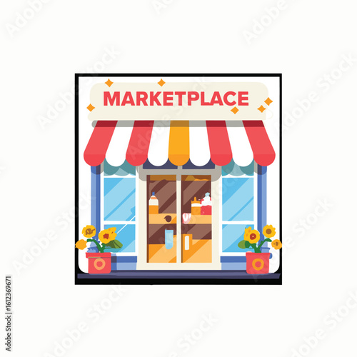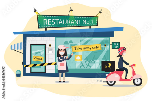 Místní trh street shop otevření události vektorové ilustrace. Žena promotér přilákat zákazníky a hosty na nákupy, aby se stal první kupující
