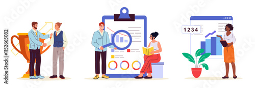 Loterie a kasino karban ikona set, vektorové ilustrace izolovaných na bílém pozadí. Šťastní lidé hrají sloty, fortune wheel a bingo, Keno, lotto loterijní hry, účast na losování cen.