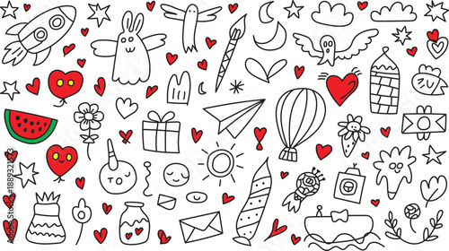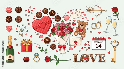 Láska reklamní vektorové ilustrace. Moderní tenká linie umění plochý styl designový prvek S Saint Valentines day Láska romantické symboly, ikony pro webové stránky bannery a tištěných materiálů.