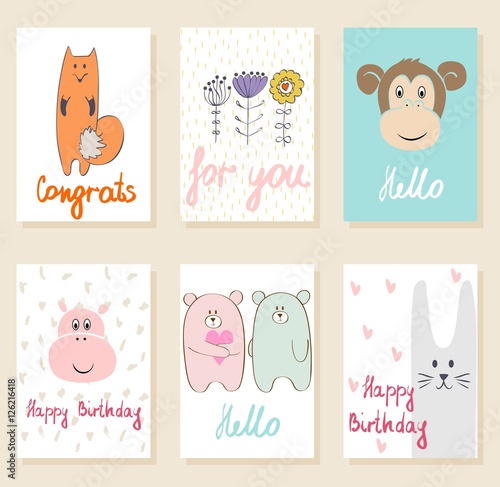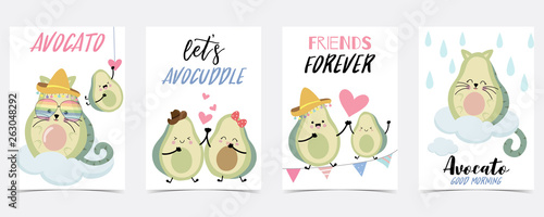 Valentýnské pohlednice se šťastnými romantickými milostnými kočkami, písmem kaligrafického textu. Vektorové ručně kreslené ilustrace.
