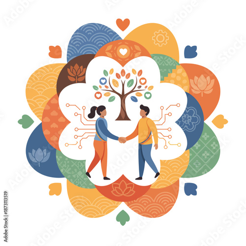 Láska smíření vektor. Byt šťastný pár opravy roztrhané srdce kreslené ilustrace. Obnova vztahu, koncept rodinné psychoterapie