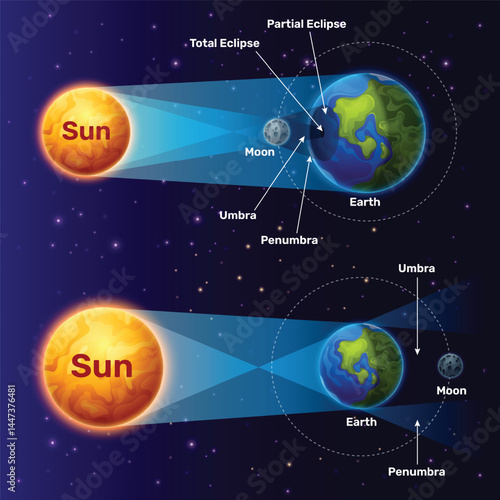 Diagram měsíčních uzlů, průsečíky mezi ekliptickou a měsíční oběžnou dráhou. Vektorový vzdělávací plakát, vědecká infografika. Rahu a Ketu, jižní a Severní, vzestupné a sestupné lunární uzly.