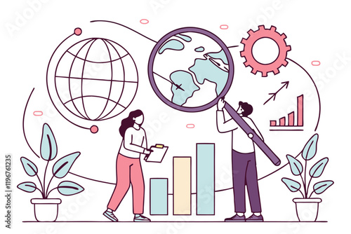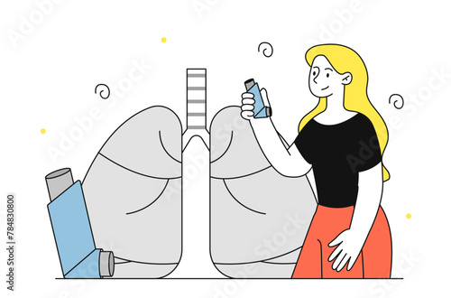 Plicní inspekce vektorové ploché ilustrace. Obrovské lidské plíce, mikro-postavy se stetoskopem, lupa. Respirační vyšetření, pulmonologie, koncepce léčby plicních onemocnění.