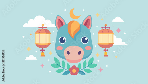Magic unicorn bezešvé vzor. Vektorové ručně kreslené jednorožci se srdíčky, hvězdy a řetězec vlajky party dekorace.