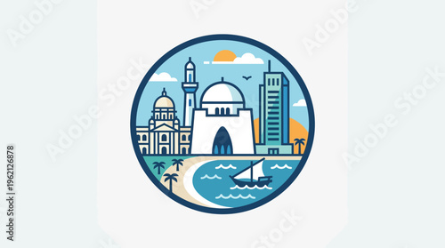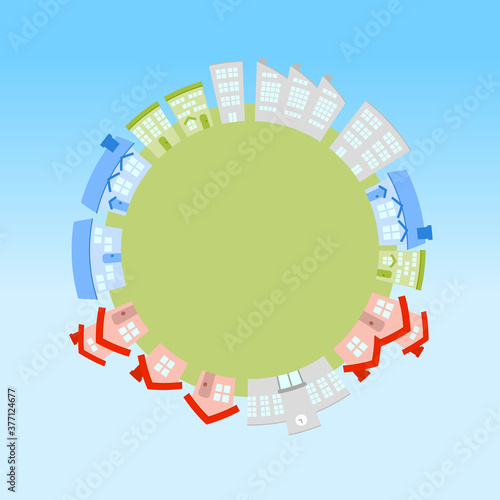 Zvětšovací sklo s městskými prvky uvnitř, vektorové ilustrace v papírovém uměleckém stylu. Hledat dům, realitní koncept.