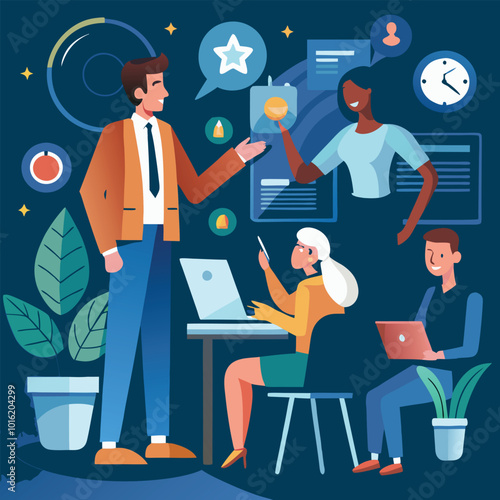 Micro mužské a ženské postavy profesionální make-up umělci použití make-up na obrovské ženské tváře, vektorové ilustrace. Služby Visagiste, koncept hlavní třídy pro webový banner, webovou stránku atd.