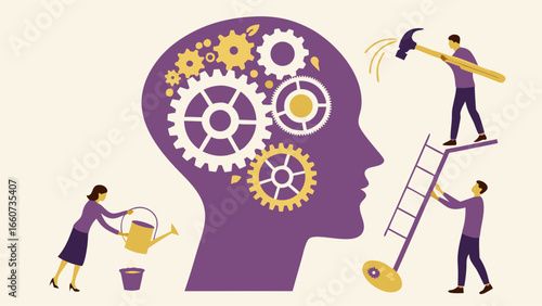 Obrovské prasátko, mikro podnikatelé sbírající zlaté dolarové mince z velkého stromu peněz, vektorové ilustrace. Tvorba a úspora peněz, finanční úspěch, složení bankovních vkladů pro webový banner atd.