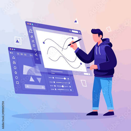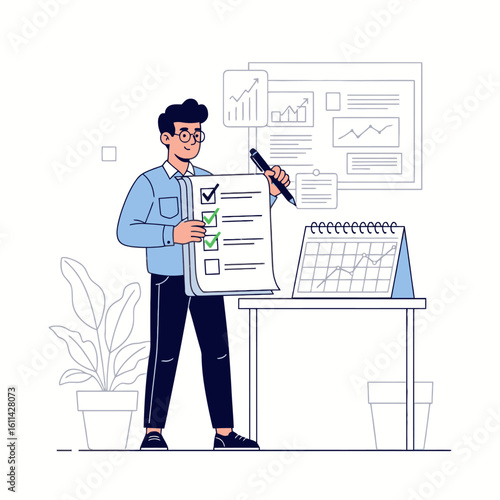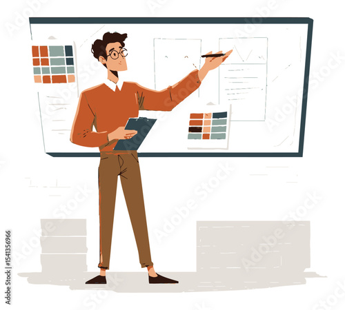 Muž Architekt provádění změn kreslení budovy plán projektu vektorové ikony izolovaných na bílém pozadí.