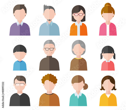 Mužské avatar ikony vektorové sady. Lidé postavy v plochém stylu. Designové prvky izolované na bílém pozadí. Tváře s různými styly a národnostmi.