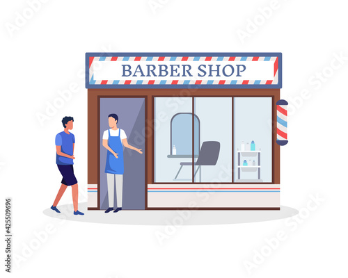 Pánský obchod s oblečením, stojan s oblečením a obuví. Mužská postava výběru tričko a džíny, ploché vektorové ilustrace. Pánský módní butik, maloobchod.