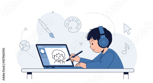 Mužský hudebník zažívá kreativní krizi nebo blok, ploché vektorové ilustrace. Smutný muž s kytarou sedí u stolu s čistým listem papíru na něm. Kreativita krize, úzkost, únava, deprese.