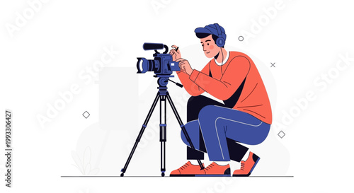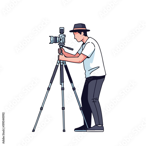 Mužský operátor pracuje s videokamerou vektorové ikony izolovaných na bílém pozadí.