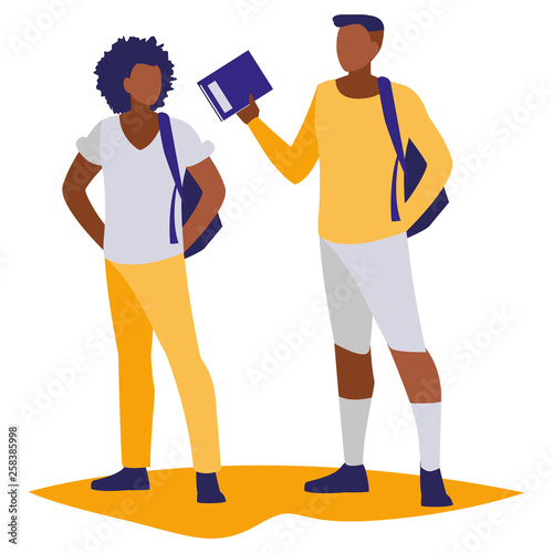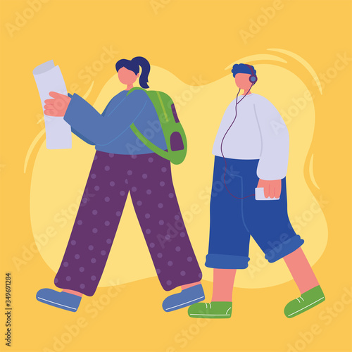 Mužské studentské postavy dávat vysoké pět vektorové ikony izolovaných na bílém pozadí.