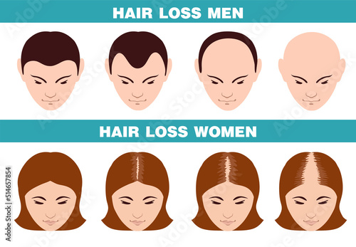 Mužský typ alopecie plakát. Fáze vypadávání vlasů vektor. Muž skalp s androgenetické plešatění pokroku. Ilustrace procesu ředění vlasů