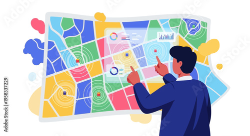 Muž reklama on-line rezervace letenek služby vektorové ilustrace. Cestovní aplikace, webová stránka rezervace turné na propagaci smartphonu