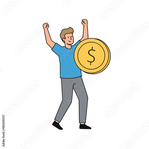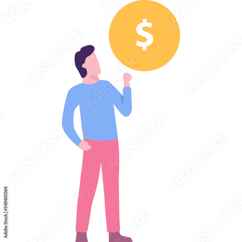 Muž a peníze mince stack vektor. Ekonomika nebo investice 3D ilustrace. Zvýšení rozpočtu, finanční růst a úspěch izometrické ikona izolovaných na bílém pozadí