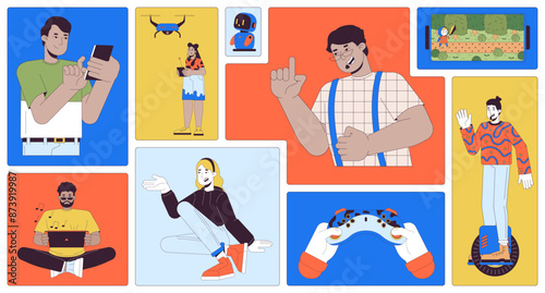 Muž a žena postavy čtení knih doma i v knihovně. Vektorové ilustrace sada lidí číst knihu. Studenti studují a připravují se na zkoušku.