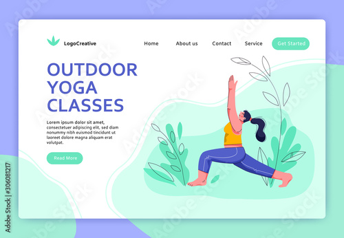 Muž a žena ve stromové józe představují. Koncept harmonie, meditace a osvícení mysli. Wellness a zdravý životní styl. Vektorové webové stránky design šablony. Ilustrace webové stránky vstupní stránky