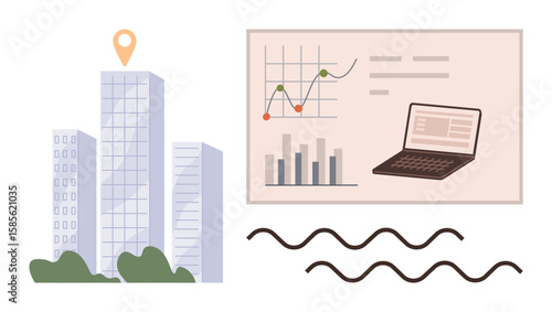 Moderní siluety městských budov. Mladý muž jezdící na elektrickém koloběžce, žena jezdící na kole na ulici, vektorové ilustrace v papírovém uměleckém stylu. Moderní vozidlo, ekologická městská doprava.