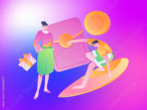 Muž a žena nosí ochrannou masku na obličej a udržují sociální vzdálenost. Ilustrace vektorového konceptu coronavirus covid-19. Cestující se chrání před vzít taxi. Šablona návrhu webových stránek.