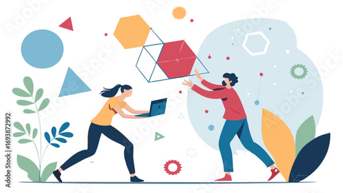 Muž boxuje se svým odrazem v zrcadle, plochá vektorová ilustrace. Bojovat sám se sebou. Boj proti sobě koncept.