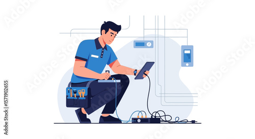 Muž nákup sportovního vybavení v garáži prodej vektorové ilustrace. Použité věci prodejní událost. Volný čas venkovní aktivity. Slevy na nové položky