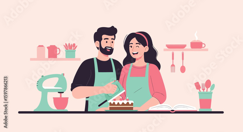 Muž si vybrat dlažbu pro domácnost. Žena ruční světlo věnec pro domácí dovolenou dekorace. Koncept ilustrace. Vektor web design šablony.