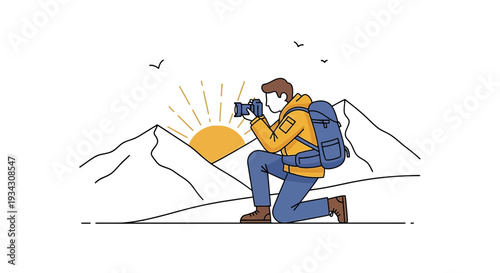 Muž horolezec na hoře vektorové ikony izolovaných na bílém pozadí.